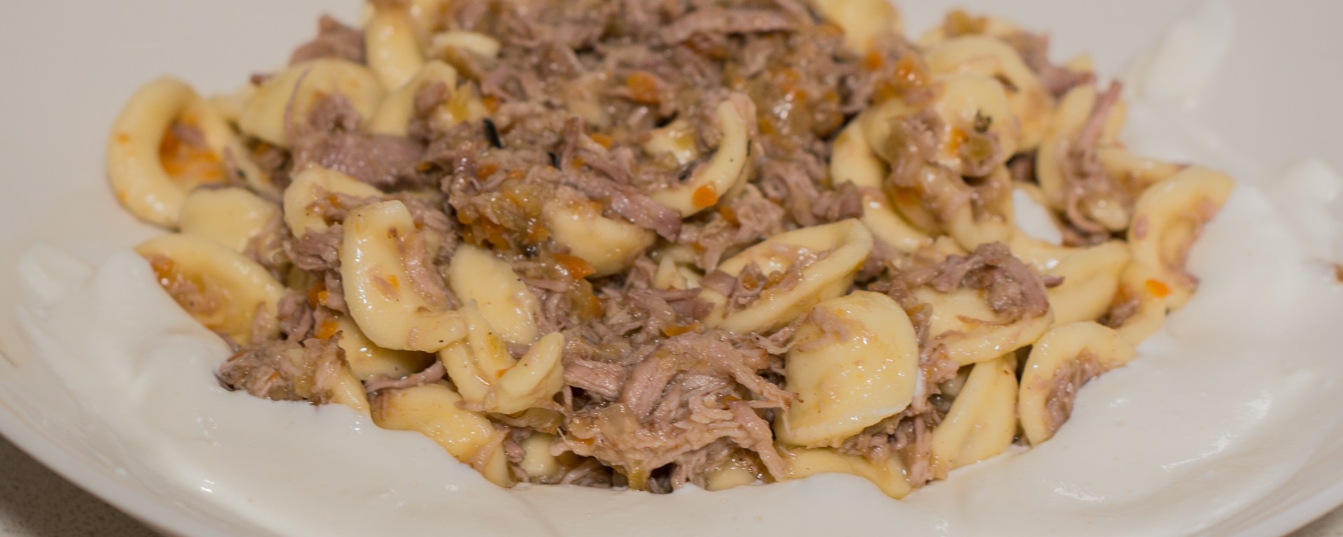 Afgelopen september waren wij voor een culinaire vakantie in Zuid-Italië. In Puglia (de ‘hak’ van de laars’) aten we bij Già Sotto l’Arco, en één van de gerechten was orecchiette (de lokale pastavorm) met een saus van lam en ricottacrème. Thuisgekomen ben ik allerlei gerechten aan het maken die zijn gebaseerd op de vakantie, en deze wilde ik zeker ook maken. Met behulp van de sous vide is het maken van een smeuïge lamssaus een fluitje van een cent. Geen risico op droog of taai vlees, gewoon een dag van tevoren in de sous vide doen en zonder er naar om te kijken is het de volgende dag klaar.