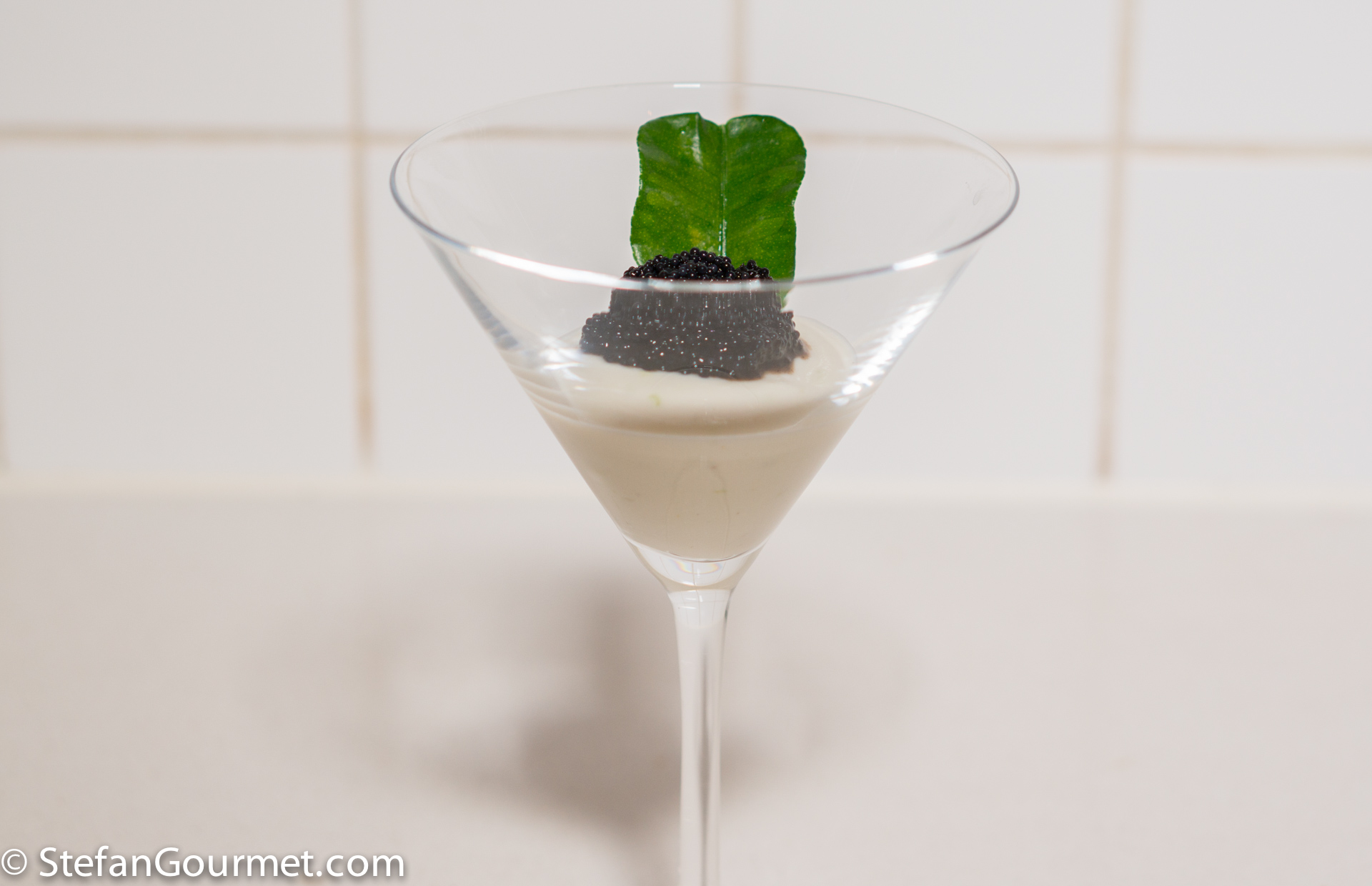 Het is natuurlijk geweldig met echte kaviaar, maar ook met imitatie-kaviaar is dit nog steeds erg lekker. Er hoeft overigens kwalitatief niets mis te zijn met imitatie-kaviaar; het enige verschil is dat het eitjes zijn van een andere vis dan de steur.