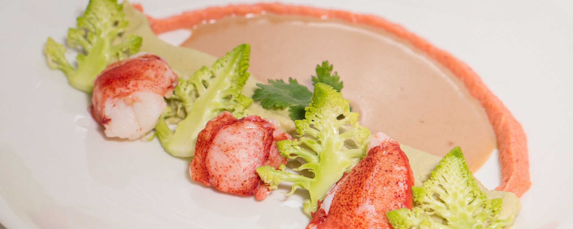 - Kreeftenmousse van de rest van het kreeftenvlees, waarbij de kreeftsmaak is geaccentueerd met een beetje kreeftenbisque