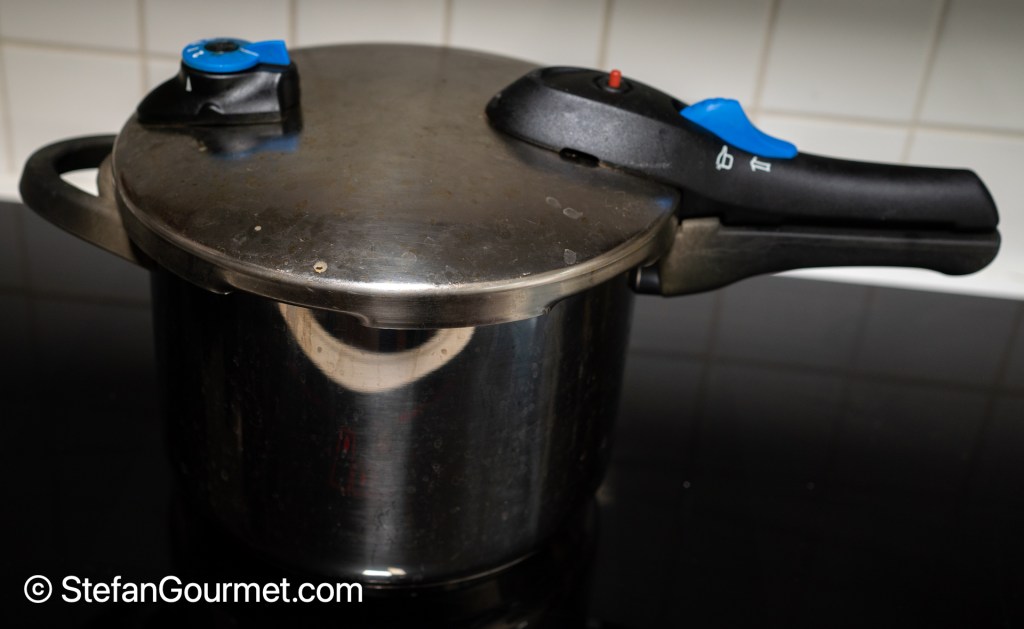 Snelkookpan: breng de pan op druk en laat een half uur garen.