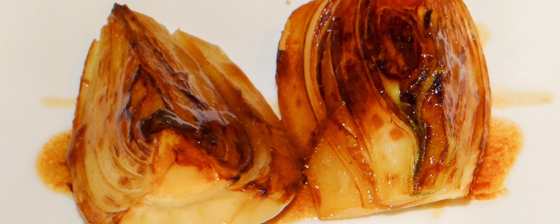 “Fondant” is een manier van groente bereiden die ik in (Britste) kookprogramma’s zag, maar verder nog nooit van had gehoord. Groente wordt daarbij tegelijkertijd gegaard en gebakken, door tijdens het bakken een laag bouillon in de pan te schenken. De bouillon kookt in en geeft smaak aan de groente, en als de bouillon dik is geworden, wordt de groente ermee geglaceerd. Het is daarbij de kunst om te zorgen dat drie zaken tegelijkertijd klaar zijn: het garen van de groente, het bruinen van de groente en het inkoken van de bouillon. Vooral het garen van dikkere groente kan daarbij lastig zijn, want een grote kans dat de groente al bruin is en de bouillon al ingekookt, maar de groente van binnen nog hard is.