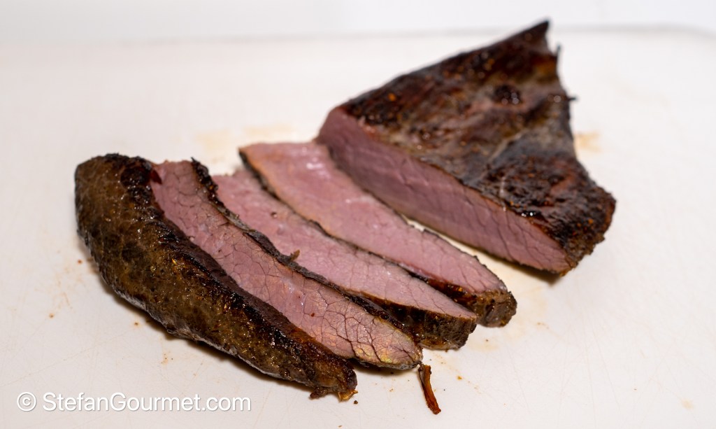 Het vlees zal van binnen nog rauw zijn; het gaat alleen om de rooksmaak van buiten.