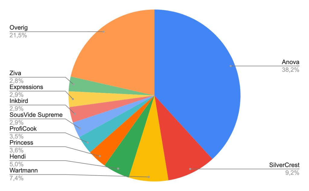 Meer dan een derde van de invullers heeft een Anova en een verrassende tweede is SilverCrest van Lidl. Van de apparaten in deze top 10 is 18% een bak (Hendi, ProfiCook, SousVide Supreme, Expressions) en de rest zijn sticks.
