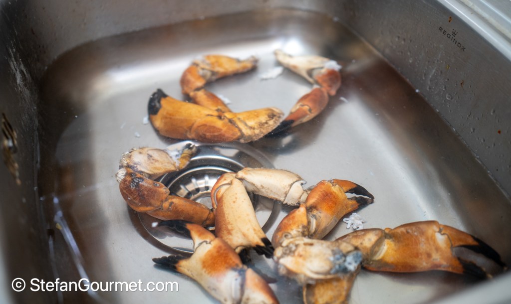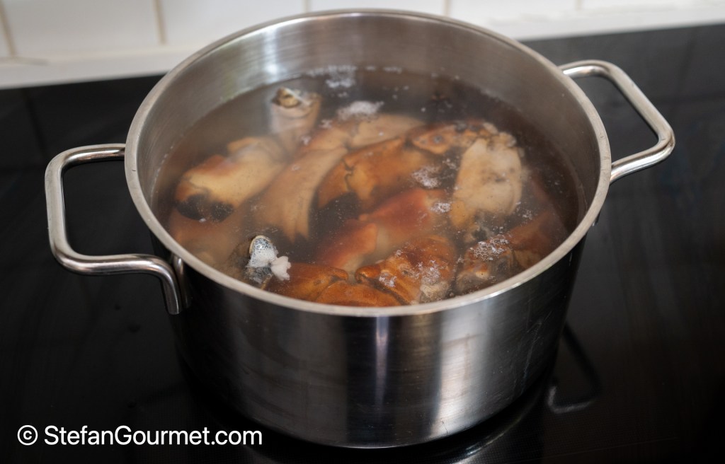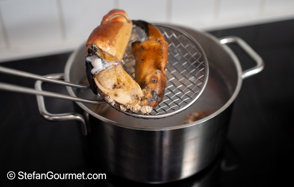 Haal de krabklauwen daarna uit het water en bewaar het kookwater.