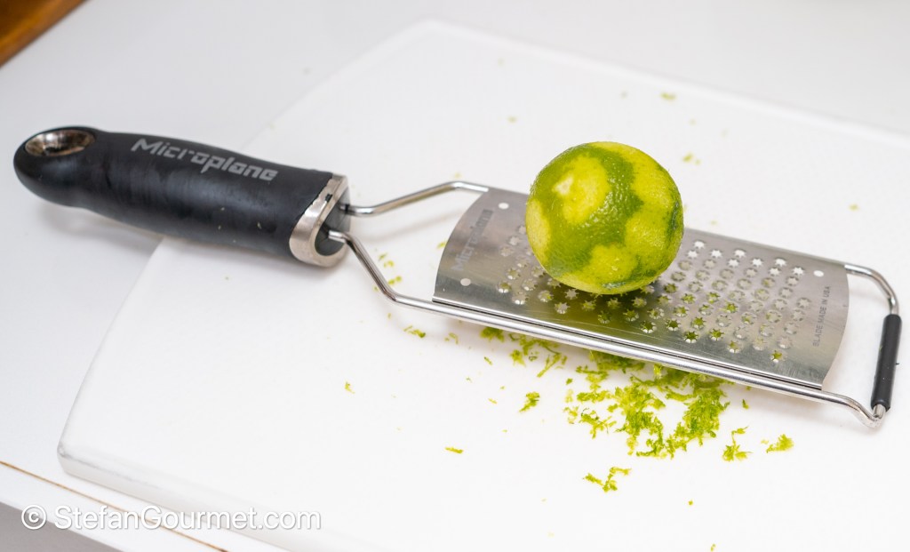 Schrob de limoen met warm water en droog hem af. Rasp daarna de schil.