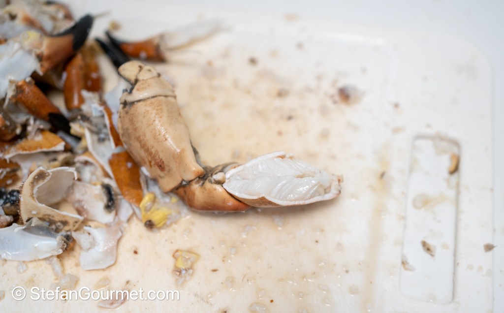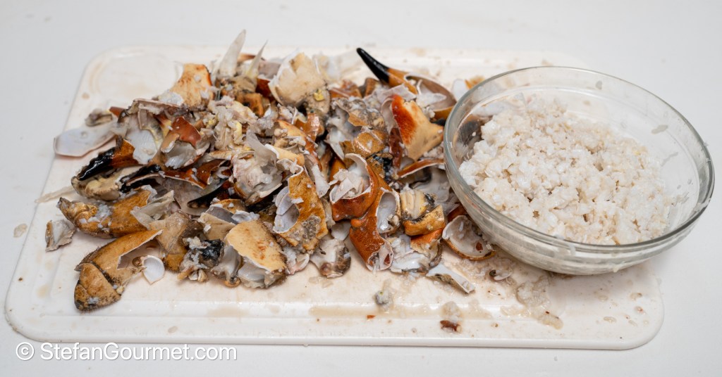 Controleer met je vingertoppen goed of er nog kleine stukjes krabschaal tussen het krabvlees zitten.