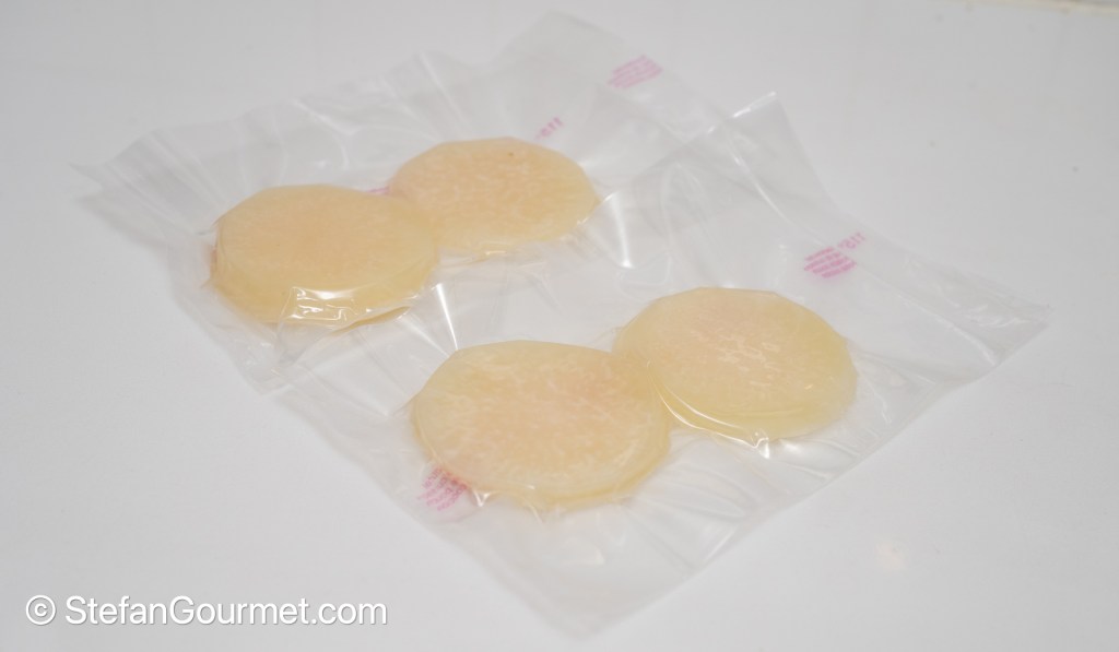 …en vacumeer ze in stapeltjes van 4 plakjes.