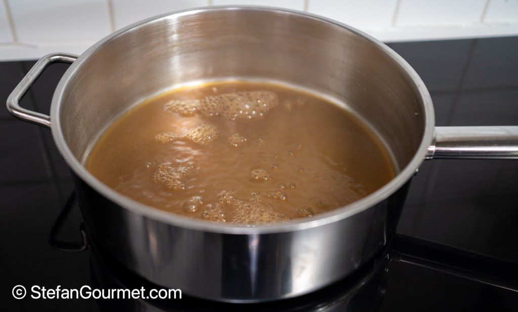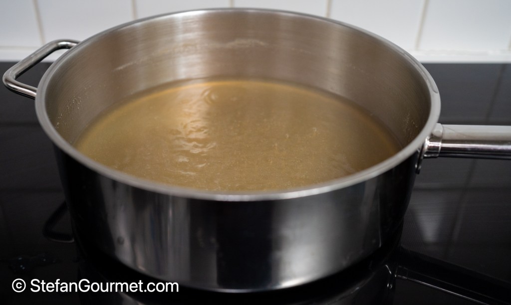 Zeef de krabbouillon na een uurtje trekken in een brede lage pan.