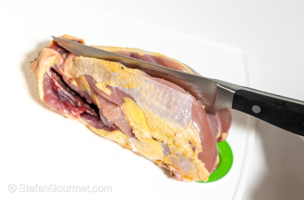 Snijd vervolgens de borstfilets los door strak langs het borstbeen te snijden.