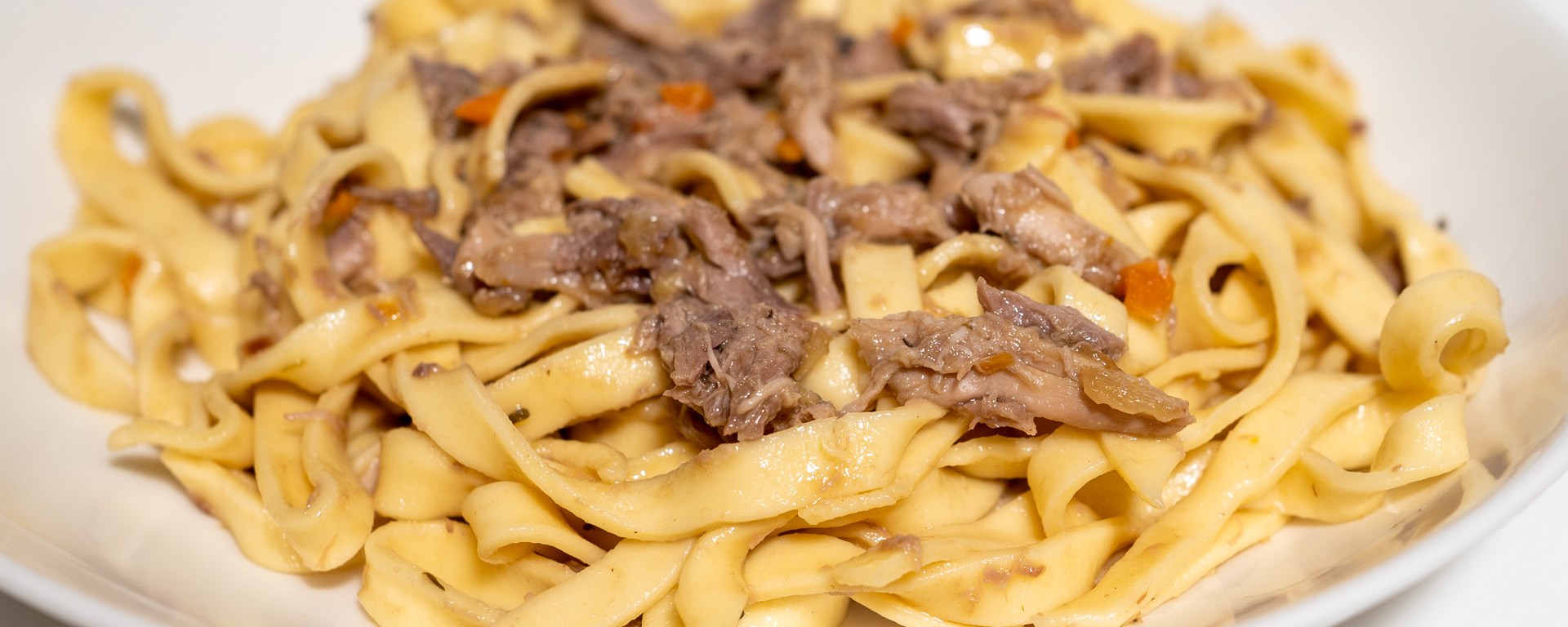 Afgelopen september op vakantie in Italië at ik bij één van mijn favoriete restaurants in Italië, Danêl Ai Cacciatori in Friuli, verse pasta met een sugo van fazant. Dit was een pastasaus zonder tomaat, of eigenlijk helemaal geen saus, maar pasta gehusseld met jus van de fazant en stukjes heerlijk malse en sappige fazant. Zoiets wilde ik thuis ook wel eens maken. Voor de sugo di fagiano heb ik alleen de bouten van de fazant gebruikt, want de borst is daarvoor niet geschikt. Het karkas van de fazant heb ik gebruikt voor de jus, en voor de borst zal ik morgen een recept geven. Je kunt zo, typisch Italiaans, eerst pasta eten met sugo van de bouten als primo piatto en daarna de borst als secondo piatto. Zo heb je een bijzonder feestmaal dat heel geschikt is voor de feestdagen. Fazant is heel geschikt om sous vide te bereiden, omdat het wild is. Wild is mager en taai, en mager vlees droogt in de pan snel uit. Met de sous vide kun je het vlees heel zacht garen, waardoor het mals wordt en sappig blijft.