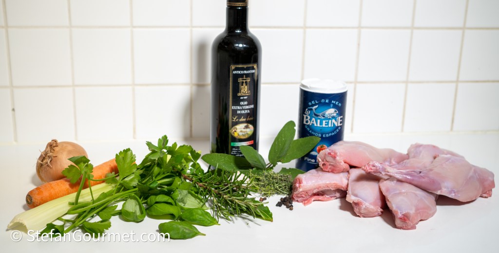 In de klassieke bereiding wordt eerst een bouillon getrokken van bleekselderij, prei, ui, kruidnagel, wortel, peterselie, salie, rozemarijn, tijm, laurier, basilicum, zwarte peperkorrels, en zout. Vervolgens wordt een tam konijn in die bouillon gepocheerd totdat het zo gaar is dat het vlees van de botten valt. Daarna wordt het vlees van de botten geplukt en met zout en peper bestrooid. Ten slotte wordt het vlees minstens een nacht gemarineerd in olijfolie met knoflook en salie. Het nadeel van deze bereiding is dat het vlees van het pocheren uitdroogt (ook al staat het onder water) en de smaak van het vlees in de bouillon terecht komt. Met sous vide blijft het vlees sappiger en blijft er meer smaak in het vlees.