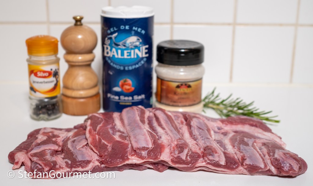 Bij de Hanos hebben ze op het moment short ribs van boerderijhert uit Nieuw-Zeeland. Voor hamburgers van rund gebruik ik ook vaak short ribs, dus het leek me een goed idee om hier hertenburgers van te maken. Het vlees is daarvoor voldoende vet. Hertenvlees wordt in Nederland gezien als wild, maar deze herten worden gefokt op een boerderij. Voor een hamburger is dat beter, want dan heb je voldoende vet nodig voor een goede smaak. Ik vind een hamburger zelf het lekkerste als hij van buiten een mooie bruine korst heeft en van binnen nog medium rare is. Dat lukt op de BBQ alleen goed met een heel dikke hamburger die sous vide is voorgegaard. Deze is maar liefst 4 centimeter hoog en weegt 300 gram per stuk, daarom serveer ik per persoon een halve. Omdat het vlees van een boerderij komt en ik het zelf heb gemalen is pasteuriseren niet noodzakelijk. Voor de kruiden heb ik gekozen voor hoe ze in Italië een hertenburger zouden kruiden.