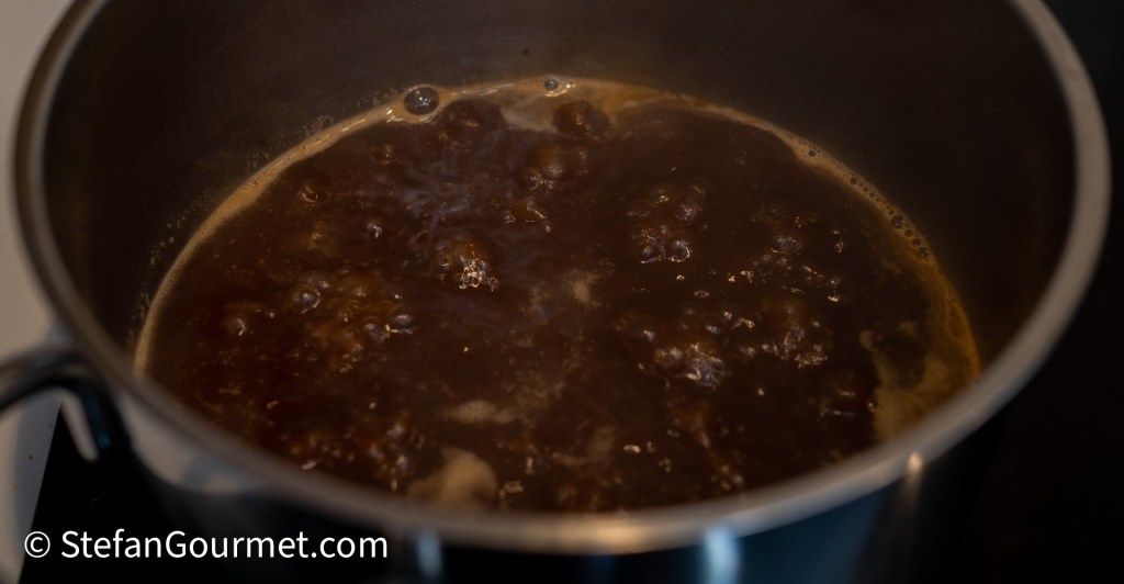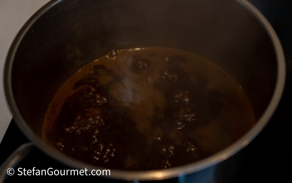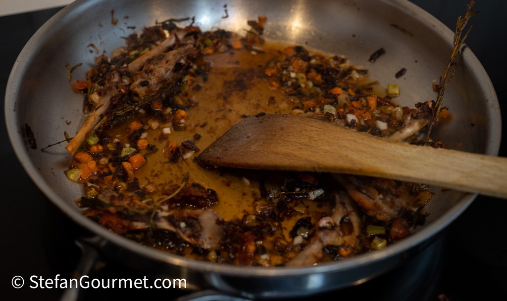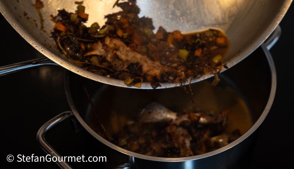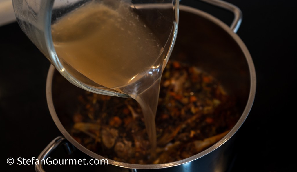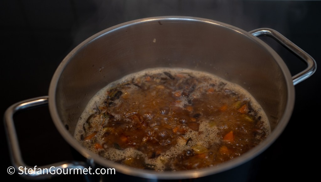…en laat deze inkoken tot ongeveer 120 ml konijnenjus.