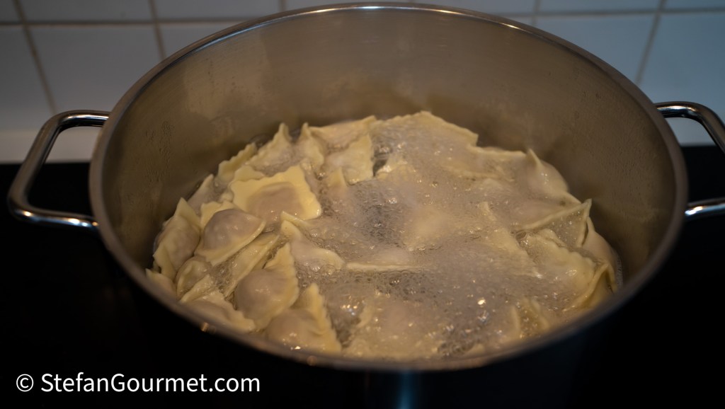 Kook de ravioli slechts 2 minuten in ruim gezouten water.