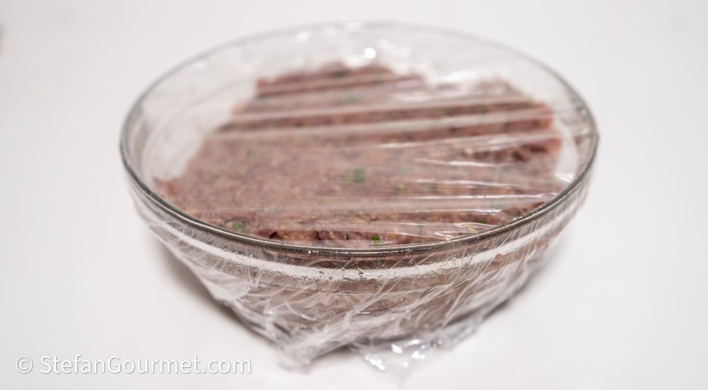 Proef de vulling en voeg zout en peper toe naar smaak, waarbij de vulling als je hem los proeft iets sterker gekruid moet zijn dan je zou denken. (Als je het te risicovol vindt om rauw ei te proeven, kun je een beetje vulling garen in de magnetron of bakken in een klein beetje olie om het te proeven.)