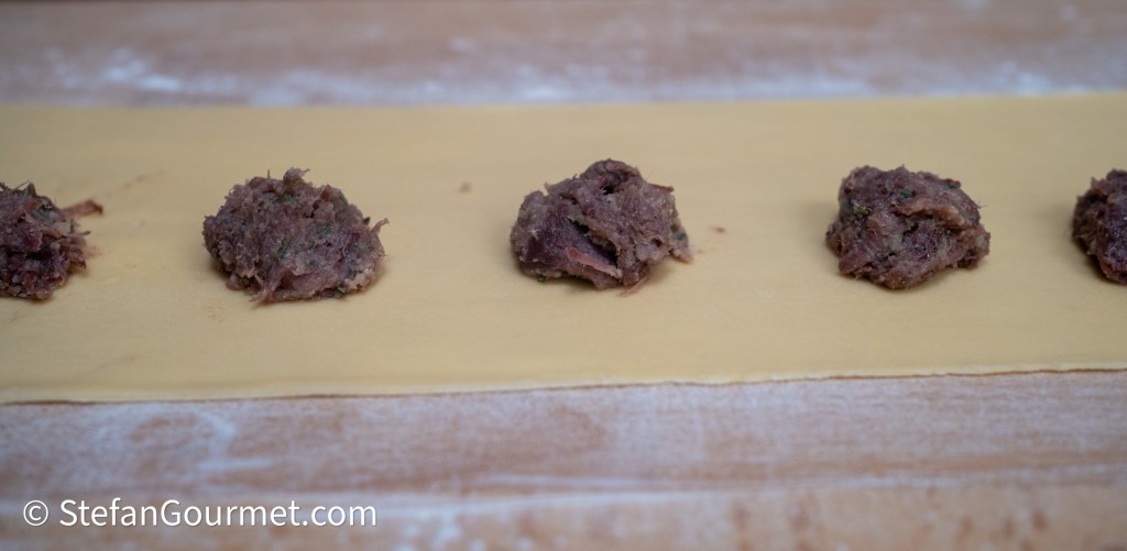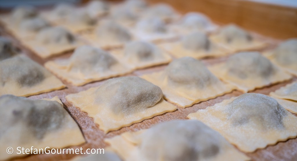 Maak het pastadeeg volgens mijn instructies, rol het zo dun mogelijk uit en maak er ravioli van volgens mijn instructies. (Mijn instructies zijn helaas op dit moment alleen in het Engels beschikbaar. Bij genoeg animo maak ik een Nederlandse vertaling.)