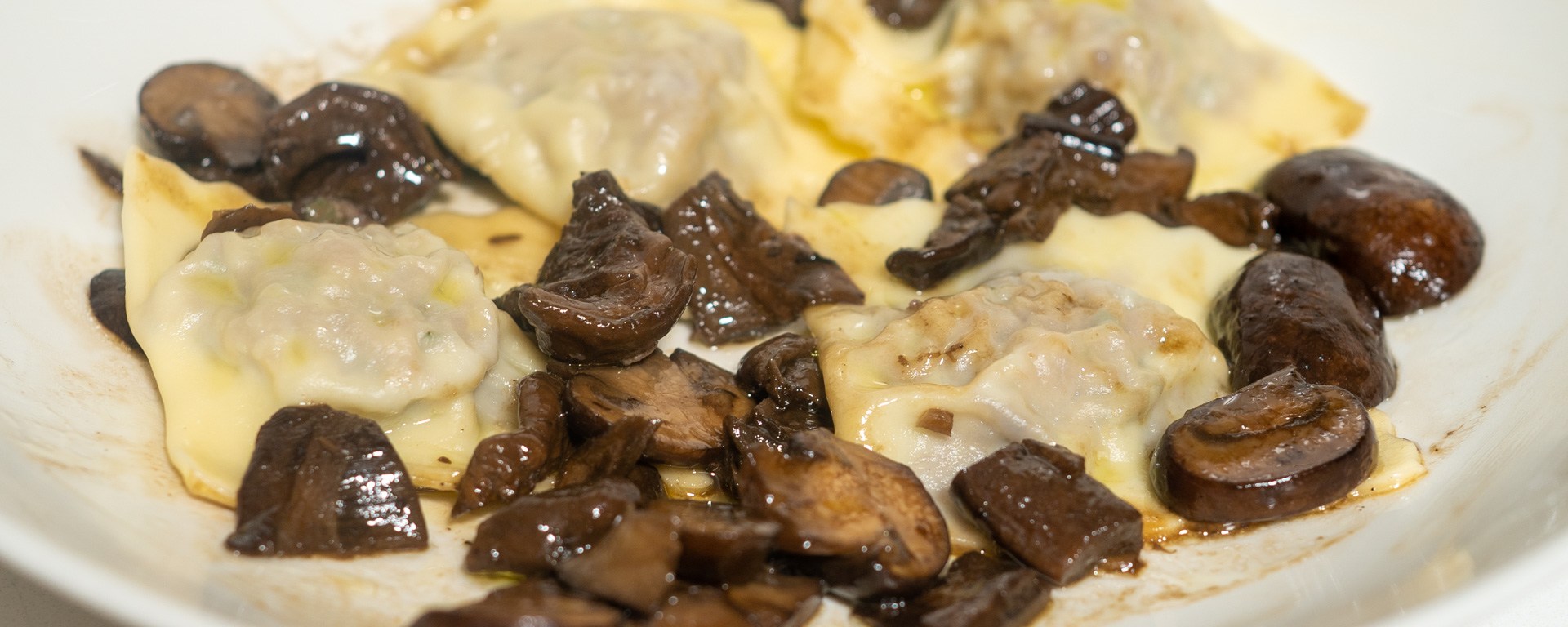 Schep de ravioli met een schuimspaan uit de pan en serveer ze op voorwarmde borden met de paddenstoelensaus. Je kunt eventueel wat hoge kwaliteit extra vergine olijfolie over de ravioli sprenkelen.