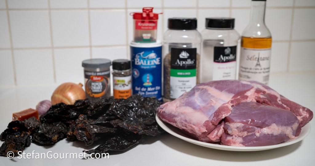 Het meeste werk voor dit recept is de recado negro en daarvoor heb je ook speciale ingrediënten nodig die je niet in de supermarkt kunt krijgen en waarschijnlijk online moet bestellen (linkjes in het recept). Daarom is het handig om daar een grote hoeveelheid van te maken, want je kunt het goed invriezen. Vanwege de lange gaartijd is het ook handig om een grotere hoeveelheid kalkoen tegelijk te garen en in porties in te vriezen. De hoeveelheden zijn voor 500 gram recado, wat genoeg is voor 5 kilo kalkoen. Ik heb ongeveer 2 kilo kalkoen gegaard en de rest van de recado ingevroren. Je kunt daar ook heerlijke zwarte ceviche mee maken.