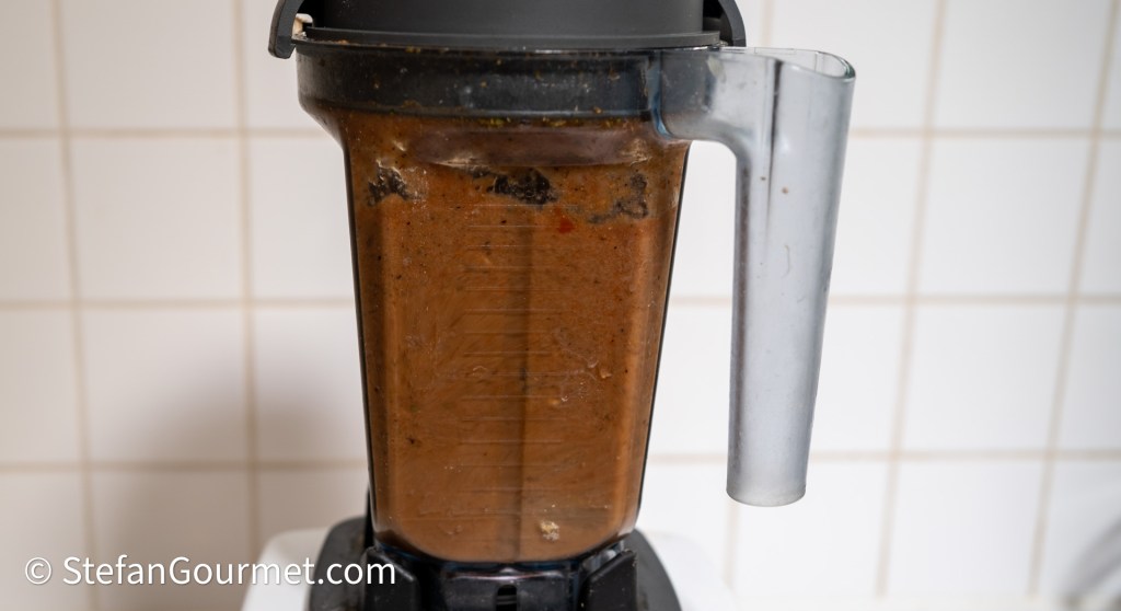 …te pureren tot het helemaal glad is. Het is immers niet lekker om brokken gedroogde chili of knoflook tegen te komen in de salsa.