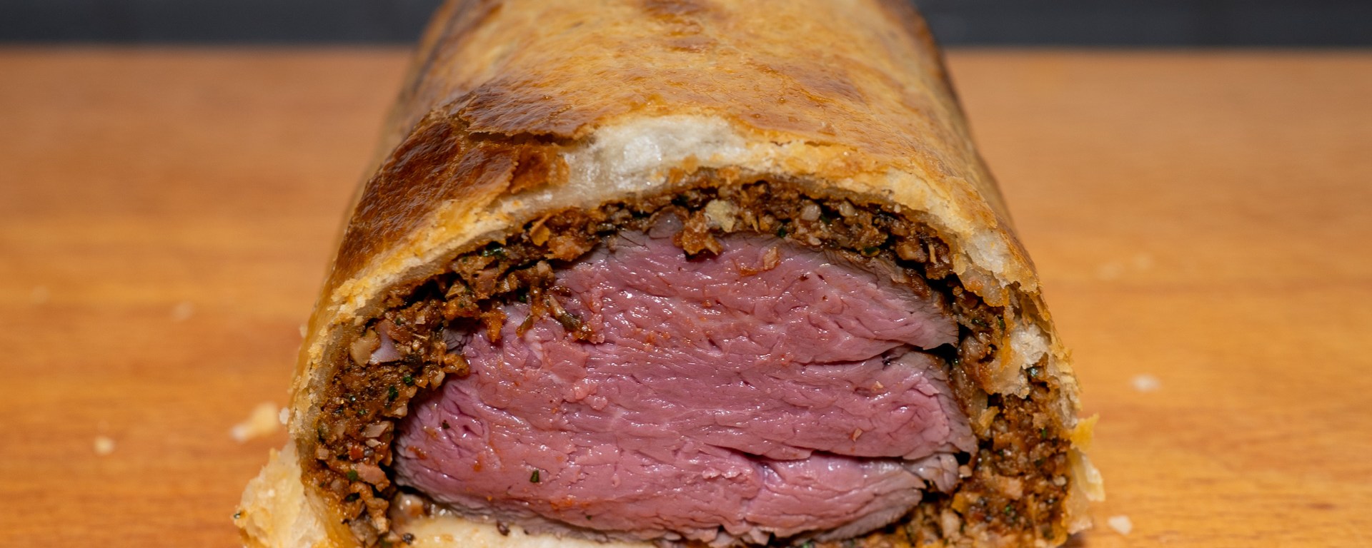 Hoewel een Wellington van hele ossenhaas indrukwekkend is als hij net uit de oven komt, geef ik vaak de voorkeur aan individuele porties. Ze zijn makkelijker te serveren en zien er strakker uit op het bord. Het aansnijden van een grote Wellington kan snel een rommeltje worden, hoewel ik er dit keer (zoals je op de foto kunt zien) in geslaagd ben een heel mooie plak te snijden.