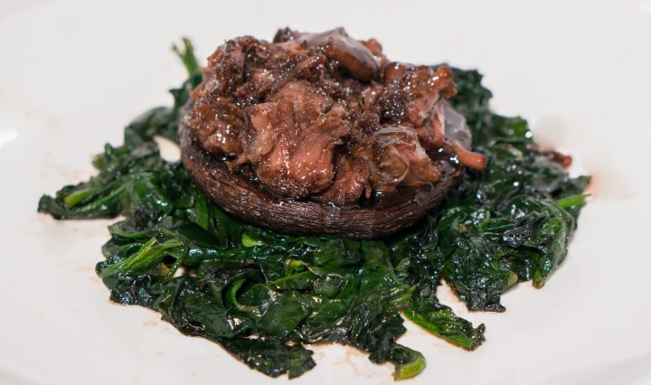 Ossenstaart Sous Vide met Portobello en Wilde Spinazie